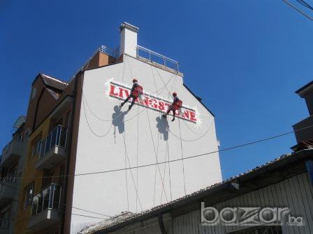 Фирма "ALPSKY" ЕООD изпълнява всякакъв вид височинни монтажи и почиствания по алпийски способ: почистване на фасади чрез хидро, паророструене и пясъкоструене, почистване и поддръжка на стъклени фасади. Измазване и боядисване на фасади, машинно измиване на силози и резервоари в промишлеността. Монтаж и демонтаж на въздуховоди, антени, рекламни пана и други конструкции и съоръжения на труднодостъпни места.