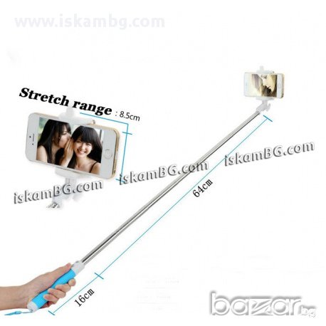 Телескопичният стик Ви осигурява перфектната селфи снимка във всяка една ситуация .Той е създаден така, че да може да се прикрепя към всеки един модел мобилен телефон посредством универсална щипка. Подходящ за: пътуване, видео дневници, видео блог, лов / къмпинг, сватби, концерти, снимка от въздуха, спортни събития и др.Снимките ще са по-ефектни, ако телефонът Ви има и втора добра камера от страната на дисплея. Така ще можете да виждате точно какво снимате. За да ползвате Bluetooth функцията на стойката, трябва да синхронизирате телефона със стойката, това става, като пуснете Bluetooth на телефона на търсене, той ще намери стойката и продуктовото и име Z07-5, синхронизирате GSM със стойката и снимате. Снимането става чрез бутон, намиращ се на дръжката на стика. Bluetooth стойката за селфи е с вградена батерия, в комплекта ще намерите и USB кабел за зареждане на стика.