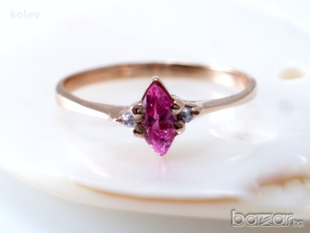 Златен пръстен с розов цирконий 1.34 грама, размер №57