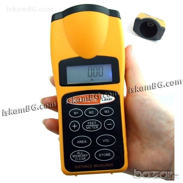 Предназначение: Уреда е проектиран за безконтактно дигитално измерване на разстояния с помоща на ултразвук. С помощта на вграден чип-компютър веднага се пресмятат площта и обема. Местото на мерене се фиксира с помощта на лазерен лъч. Многофункционален, изключително удобен, бърз, точен и необходим за работа в строителството уред, за оразмеряване на помещения в домакинството, при ремонти , в озеленяването, при климатизацията, гипскартоновите работи , проектирането на терени, промишлени проекти, и др.