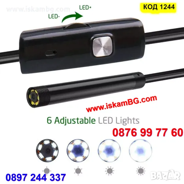 За да управлявате ендоскопа от Вашият телефон или таблет, е необходимо, да свържете Micro-USB или USB Type-C кабела към Вашето Android устройство. След това сканирайте QR кода, който е принтиран в ръководството за употреба. Изтеглете и стартирайте приложението ”AN CAMERA”, което ще Ви позволи да преглеждате заснетите изображения и видеоклипове, както и да променяте резолюцията на заснемане.