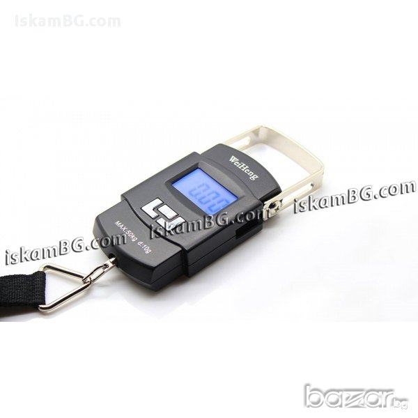 Портативна електронна везна с четириразреден дисплей тип кантар. Уреда е с ергономична форма подходяща за държене в дланта при малки тежести или може да се използва халката на горния край за закачане на опора при претегляне на големи тежести. Има кука за лесно закрепване на предмети за теглене. Предлага доста екстри като измерване на температурата, снимка на показанието, автоматично изключване на захранването след 2 минути, автоматично нулиране и др. Подходящ за риболовни цели или за бита. Захранва се от три батерии 1,5V тип "АА" (включени в комплекта). Функция нето / тара. Функция "HOLD" - запомняне на показанието. Звукова сигнализация. Кука прибираща се към корпуса за минимализиране на размера. Корпус от усилена ABS пластмаси. Работа в три системни единици: кг / Lb / Oz. Точност до 10 гр. Максимално теглене до 50 кг.