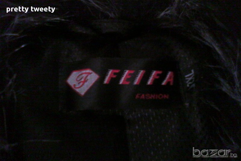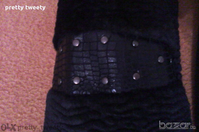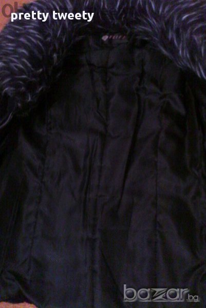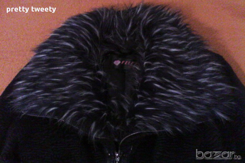 Черен кожух с космата яка и кожени части → Обява 13747850