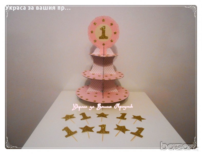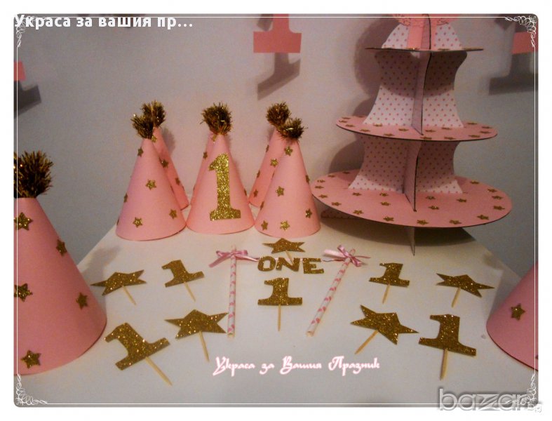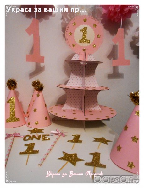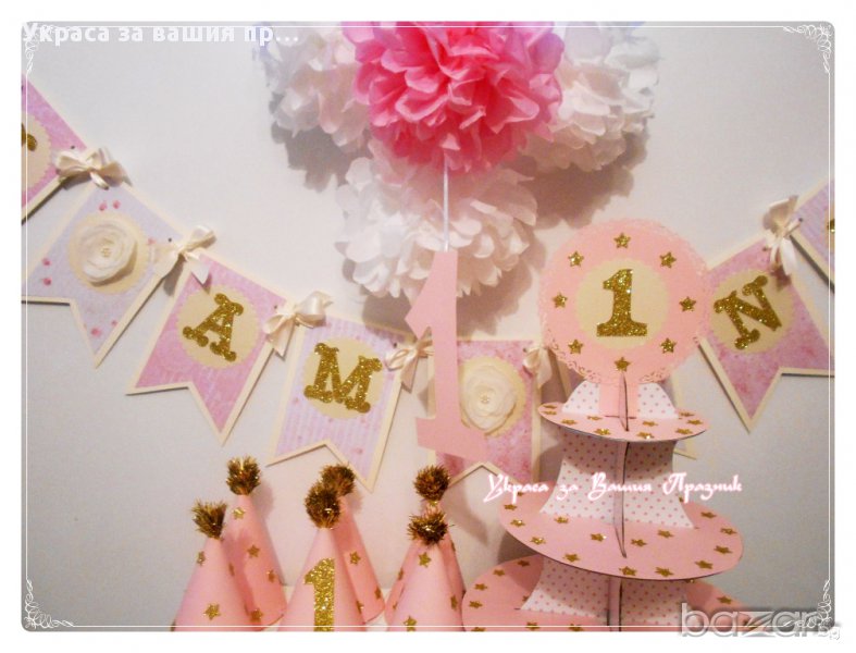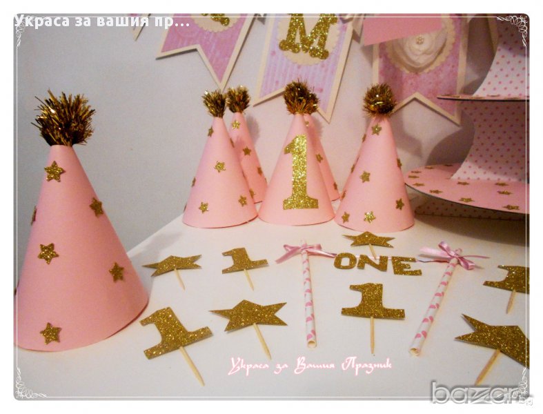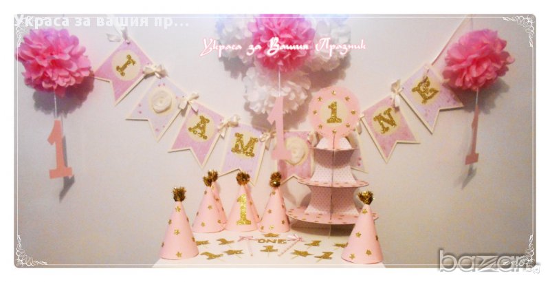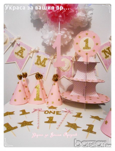 украса за първи рожден ден I AM ONE златно и розово → Обява 13751726