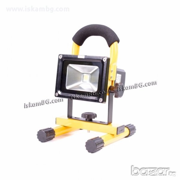 Преносим Акумулаторен 20W LED Прожектор със Стойка с възможност да се зарежда от запалка на автомобил или от домашната електрическа мрежа което го прави изключително удобен за използването му като къмпинг осветление.