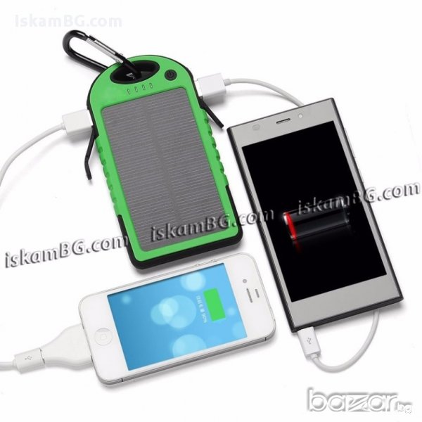Зареждайте мобилния си телефон, iPod, MP3 плейър, GPS, таблет и др, като използвате само слънчева светлина и 5000mAh литиево-йонна полимерна батерия! Power bank може да се зарежда с помощта на AC адаптер и USB порта на вашия компютър. Устройството се зарежда дори при дневна светлина и съхранява енергията във акумулаторните си батерии. Така вие може да я използвате винаги когато имате нужда от резервен източник на захранване.