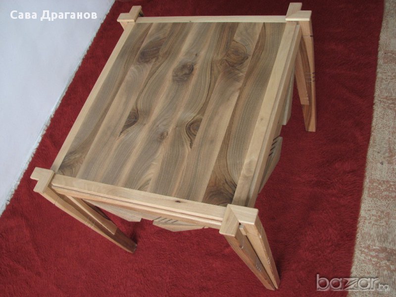 уникална масичка от орех прецизна изработка намазана с растително масло на оsmo размери височина 550мм плот 650мм/580мм