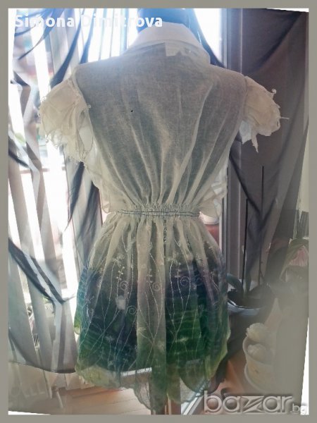 Елек,наподобяващ сако с екстравагантни декоративни ръкави от нежна леко прозираща материя.В долната част е бродиран и ръчно рисуван.