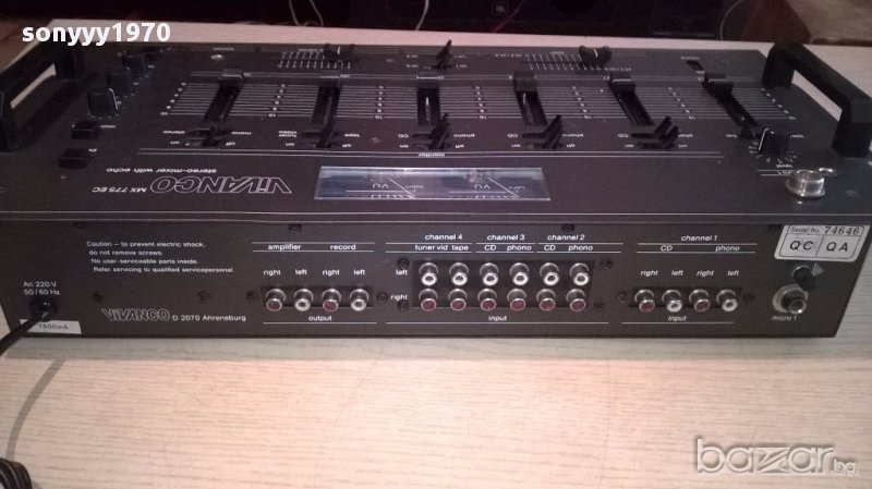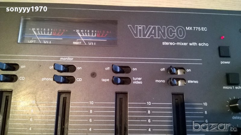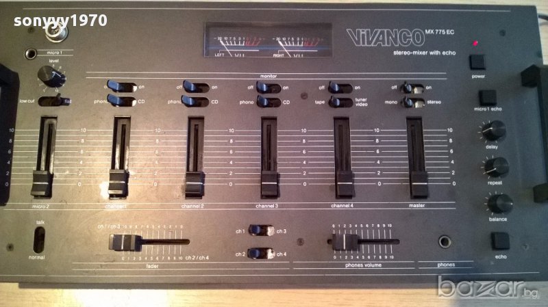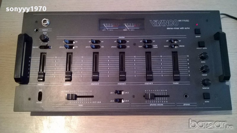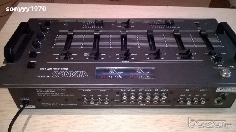 Vivanco mx775ec stereo mixer/eho-germany-внос швеицария...миксер за дискотека или за дома...работи и няма липси...плазгачите се движат плавно и мазно...нов внос и без ремонти-от днес 28.02.22г пращаме със спиди или еконт с преглед и тест след превод на капаро за куриерската услуга поради зачестили некоректни потребители-поръчки само тук в саита! по телефона и със смс не! краини цени! бартери не правиме! всеки ден нови неща-още 2-3 наши обяви тук