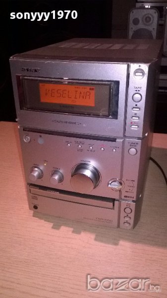 Sony hi-fi micro-tuner/rds+cd+deck/revers+ampli/aux-внос швеицария...работи васичко и цд и тунер с рдс и дек с реверси и усилвател с вход...има и оптичен...изходи за 2 колони...свири феноменалнно...нов внос-пращаме със спиди или еконт с преглед и тест след превод на капаро за куриерската услуга поради зачестили некоректни потребители-поръчки само тук в саита! по телефона и със смс не! краини цени! бартери не правиме! ПАРИ НЕ ВРЪЩАМЕ! всеки ден нови неща-още 2-3 наши обяви тук