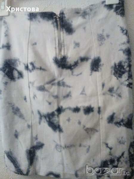 Бяла къса еластична пола на сини петна на "SISTER". → Обява 13830568