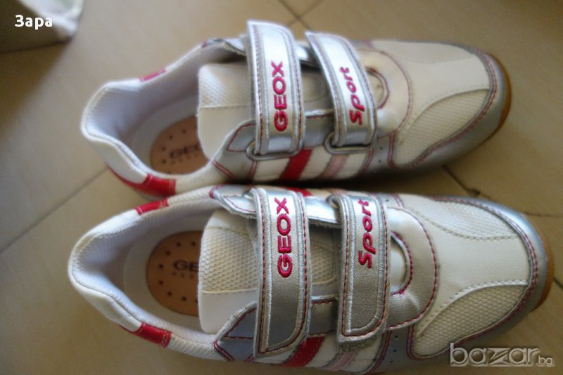 Страхотни нови маратонки Geox, 29ти номер, кожени, дишащи, с лепки. Има миниатюрна следа от лепило отстрани на 1та обувка, не се забелязва изобщо! Стелката е 18см