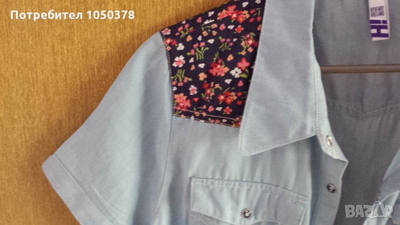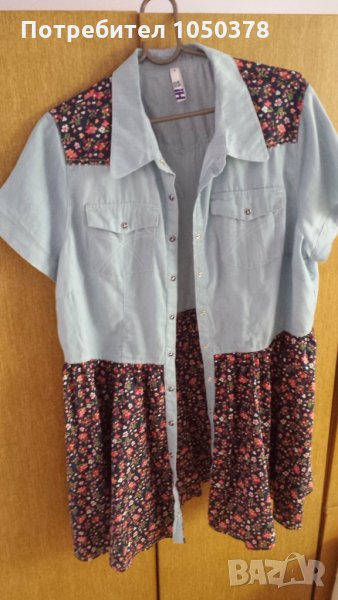 Нова комбинирана риза- туника с дънков принт и флорален мотив. Размер на етикета: EUR 46Състав: ПамукЦвят : СинМарка: By Henry Holland