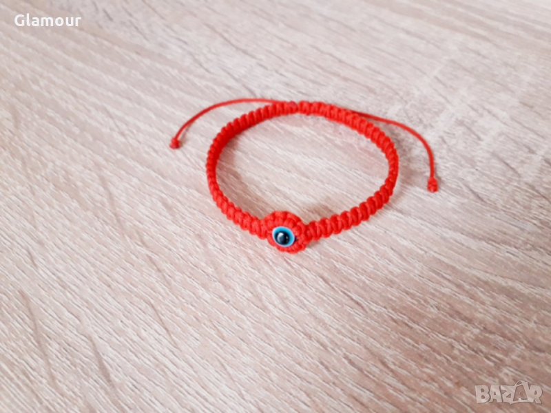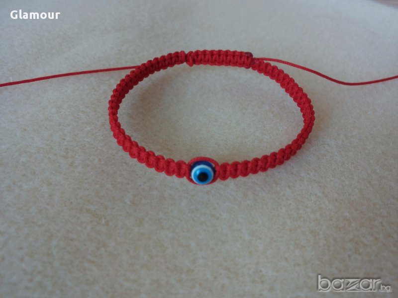 Гривната е изработена ръчно с мънисто синьо око.Закопчаването е тип шамбала,регулируем размер.
