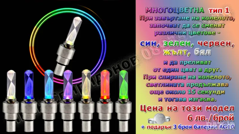 - 1 брой светеща LED капачка за вентил на гума