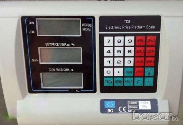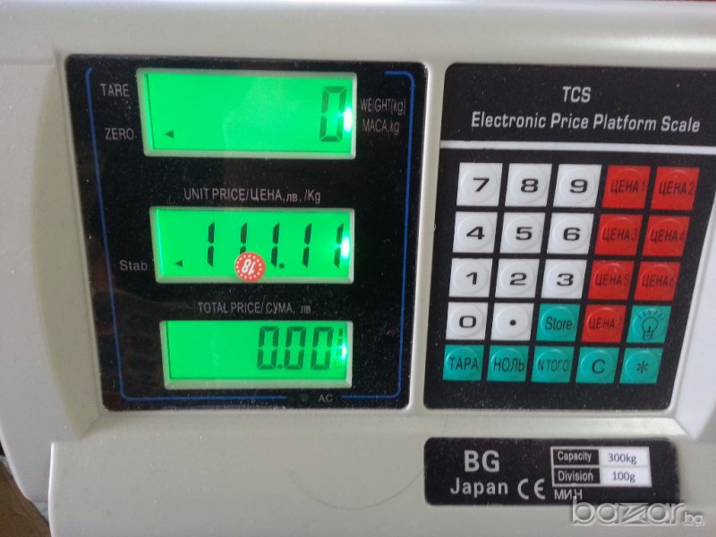 Модел - 300кг - работен плот 45/60см. - измервателна стъпка - 100гр.тегло на везната - 9кг цена 90лв.