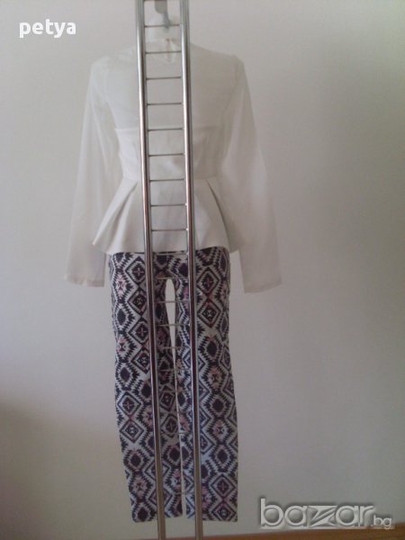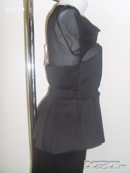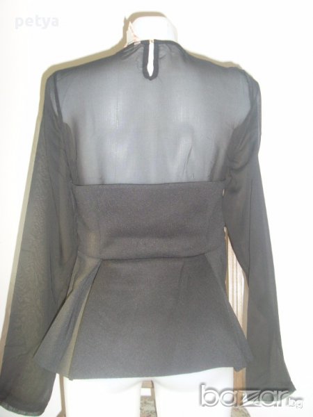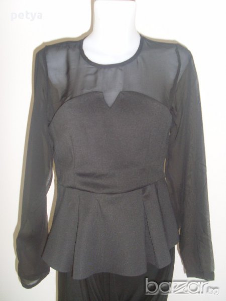 елегантна пеплум блуза,подходяща за официален случай или в ежедневието.Комбиниран размер S/M и M/L;закопчаване :страничен цип и копче на врата.
