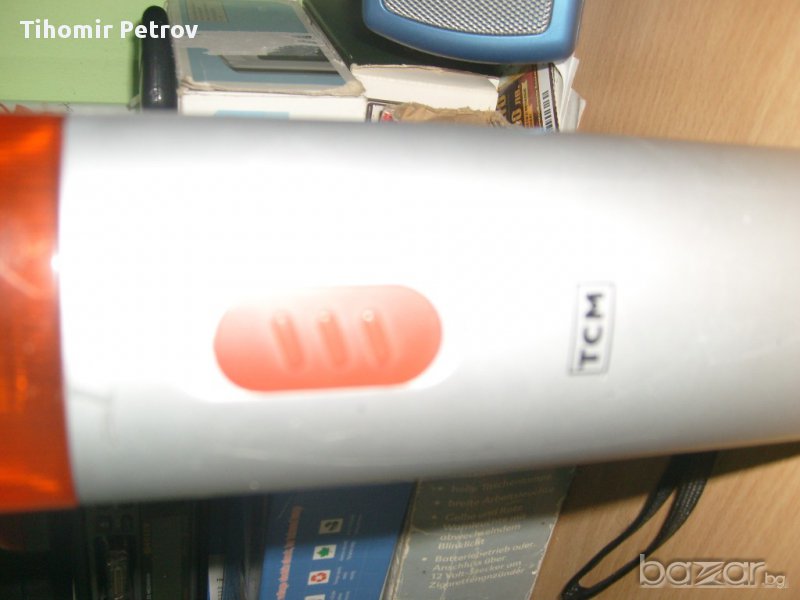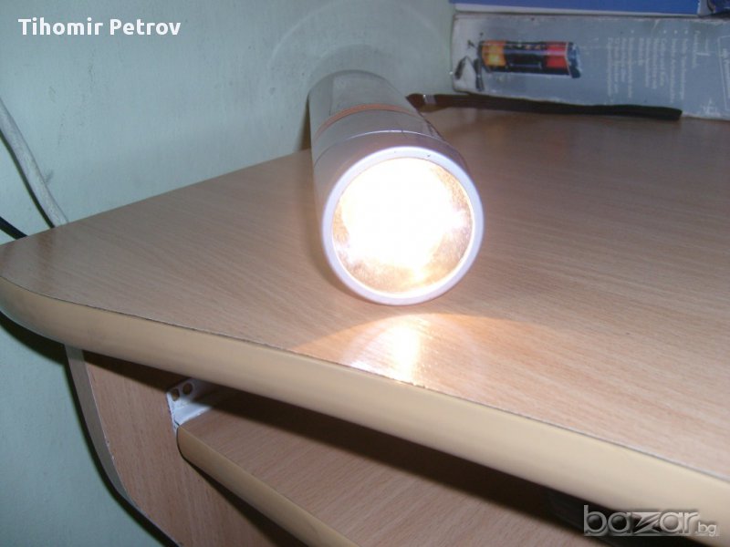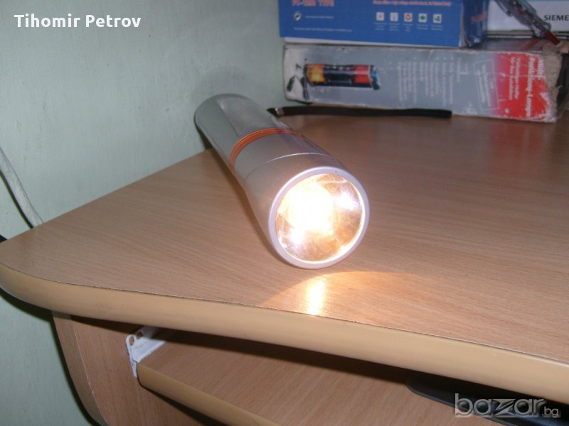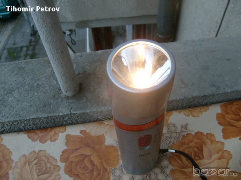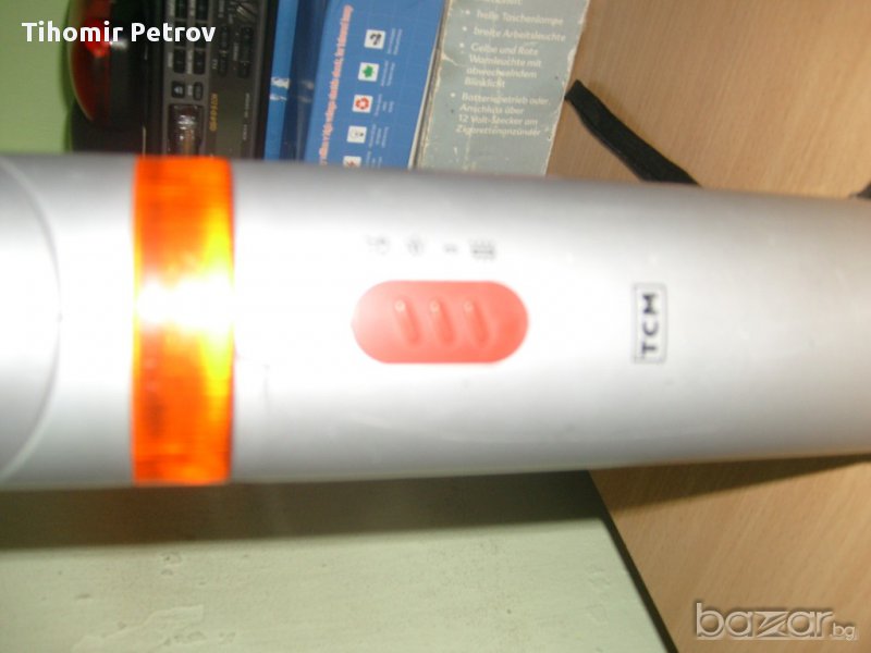 фенера е тсм сьс 3 режима на светене .немско е .сьс 4 бр. нови батерии .свети като прожектор като авариика и като луминисценна лампа 4 вата..като прожектора може да се варти /тялото/.има и магнит за поставяне вьрху желязо..цена по договаряне или бартер .