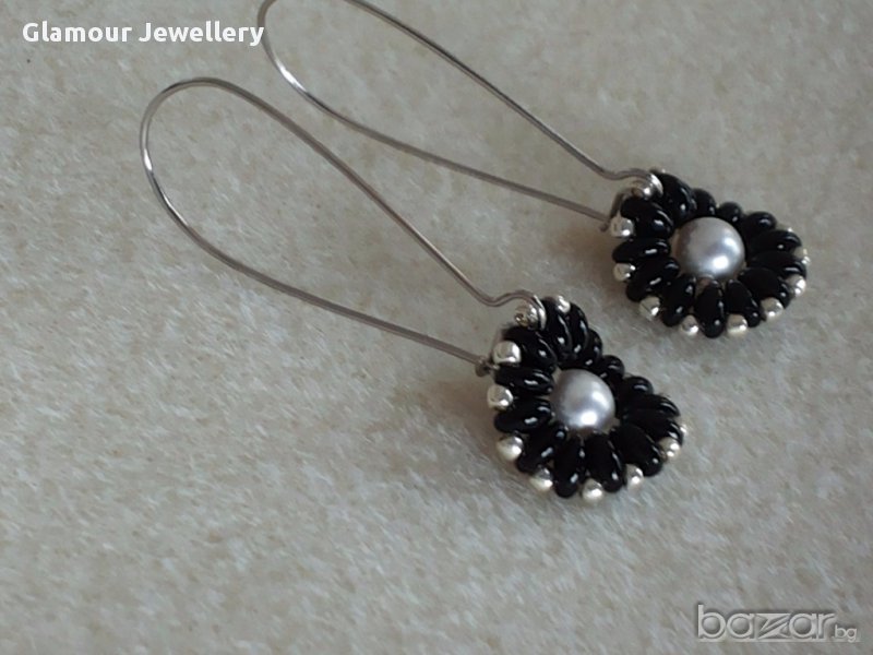 Обеци с цвете от перла и мъниста → Обява 13918290