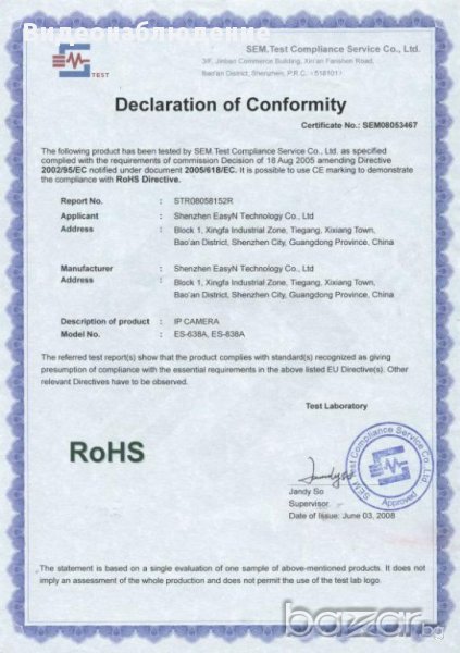 IR Осветители - Минимум осветеност : 0.001 Lux (дневно), F1.2 ( 0 Lux при включено IR нощно виждане)