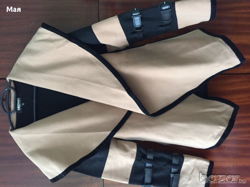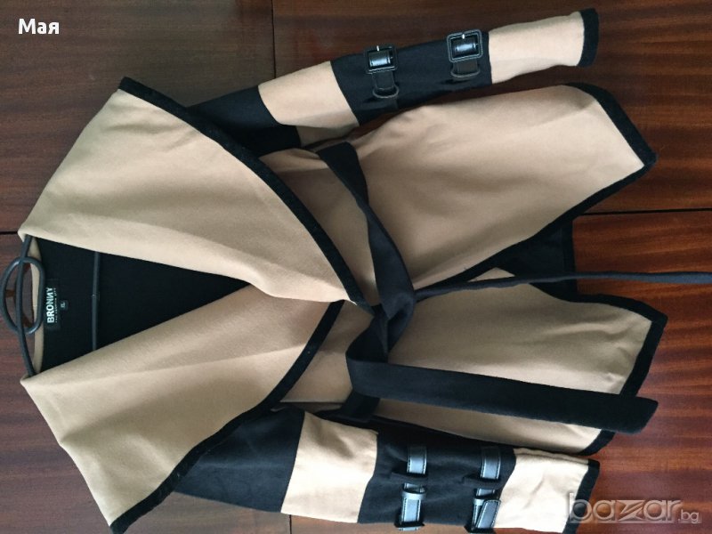 Дамско бежово-черно палто с коланче. Размер S,M,L