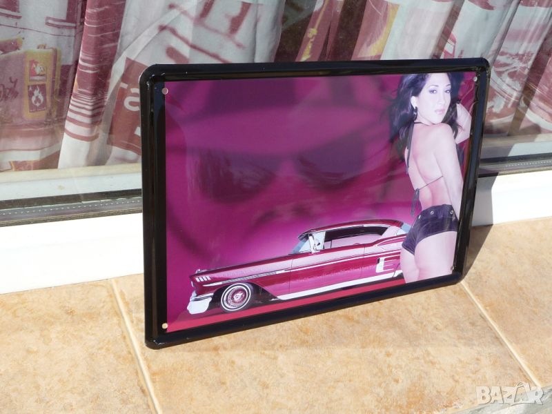 Метална ламаринена табела - Момиче до кола.