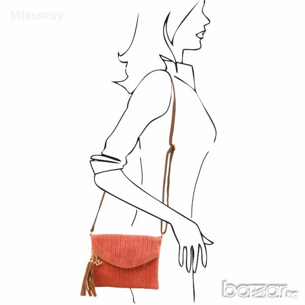 ПРОМО 🍊 TUSCANY LEATHER 🍊 Плетена дамска чанта от естествена кожа с висулки → Обява 13991145