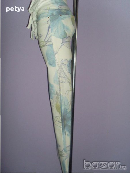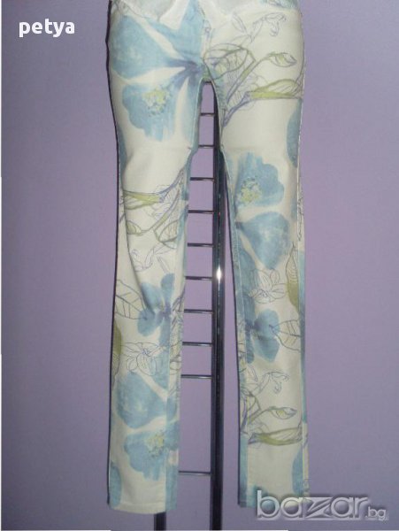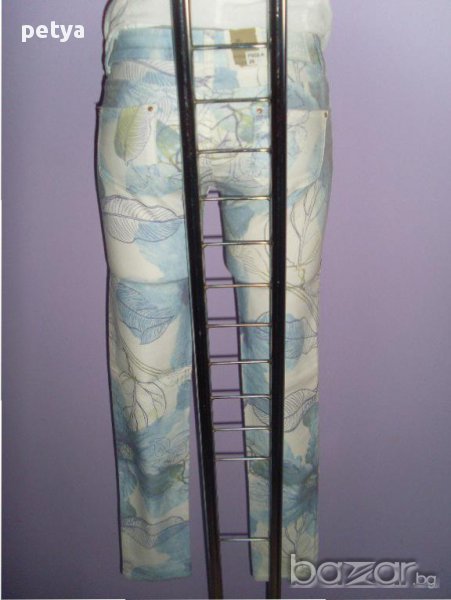 дамски тесен панталон;свеж мотив,мека материя(97%памук,3%еластан),размери 26 и 28;закопчаване с цип и копче.