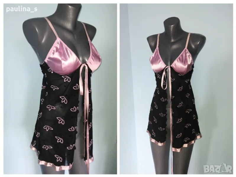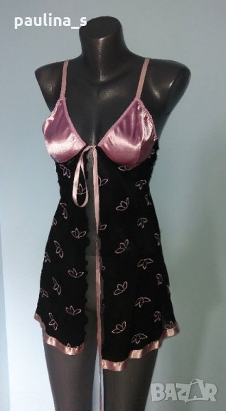 1. Колаж / M / XL / "Cottelli" - Цената е крайна 29,99лв. Дамско луксозно неглиже / нощница, с бюстие и сатен на бюста. Материята е прозрачна и еластична с бродерии, дължината на презрамките се регулира. Бюстът отпред е оформен от розово сатенирано еластично трико(ликра), завързването е със сатенена пандела. Дрехата е покрита с бродерии в черно и розово, долу за разкош завършва с розова сатенена лента. Дизайнерски артикул, секси и много сладка. Като нова, без дефекти и етикет.