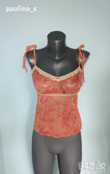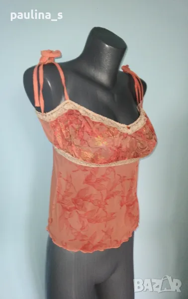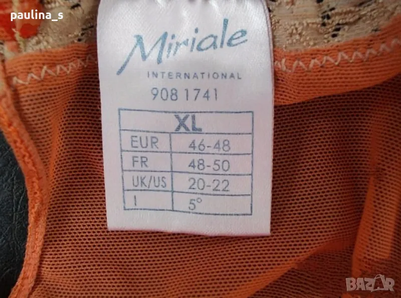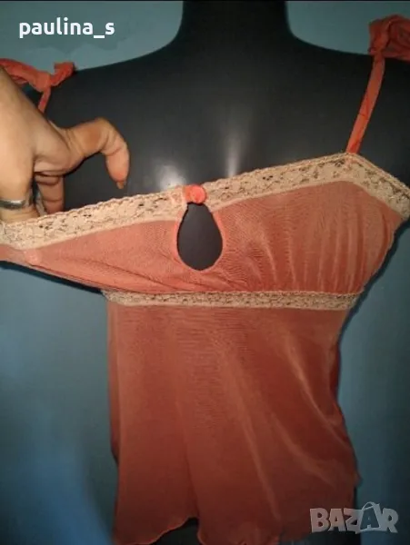 2. ПРОДАДЕНО / Колаж / M / 2XL / Луксозно неглиже / горнище за пижама / потник с бюстие "Мiriale" lingerie. Цената е крайна 24,99лв. Луксозен дамски потник / неглиже с бюстие. Материята е еластична и прозрачна, цветът е оранж. Горната част върху бюста е покрита с бродерии, като разширението започва от нивото на дантелата под бюста. Предната долна част е с по-ярки щампи на оранжа. Презрамките се завързват. Като ново е, без дефекти и етикет.