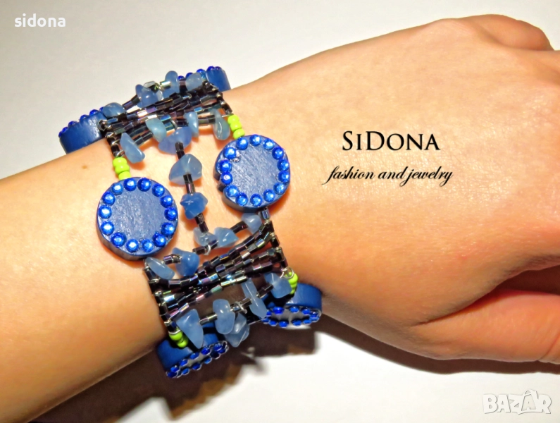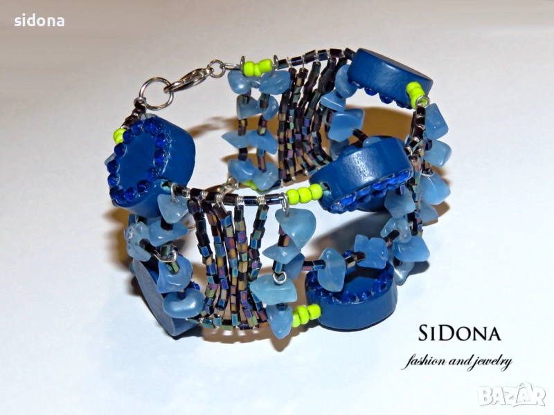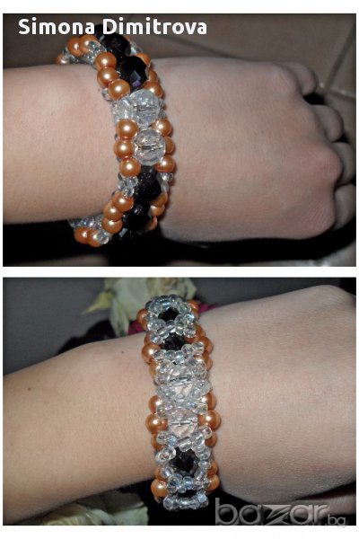 Авторска гривна.Изработена е от стъклени перли и синци.Може да бъде носена и на двете си страни.