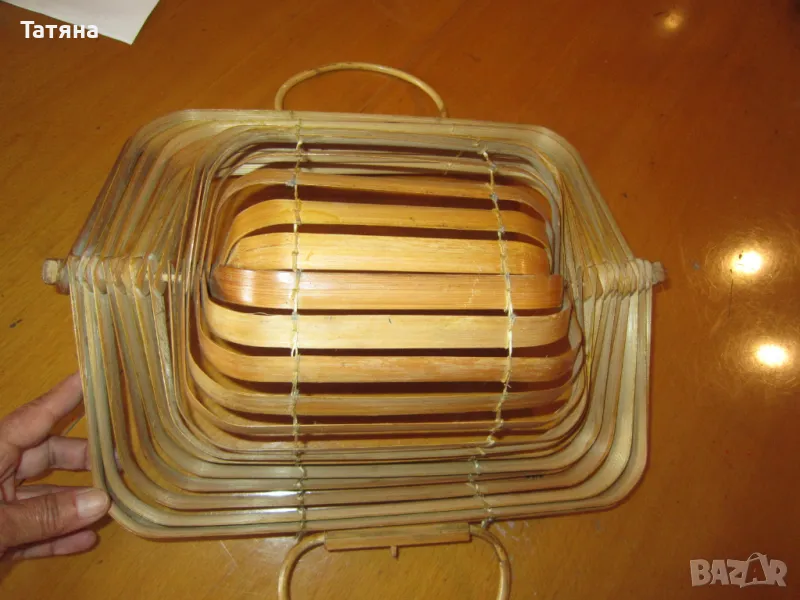 бамбук чанта / КОШНИЦА / РАЗМЕРИ/Дълж.-34см при дръжката ;36см -долу в основата;напълно разтворена-сн.8 -34/20см.Цена -40 €