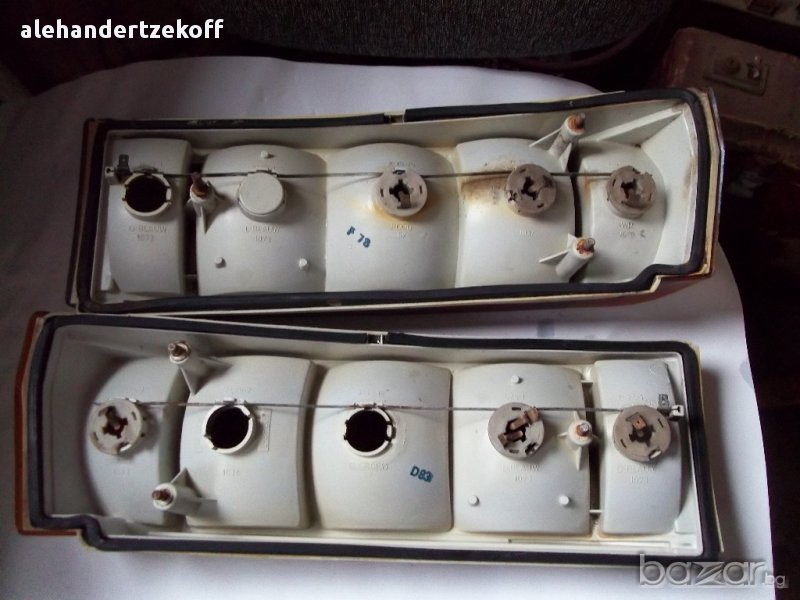 Светлините са с основите и са в отлично състояние оригинал ,,СЕЙМА'' . Лявата е без бялото стъкло за задна скорост-60лв , дясната е пълен комплект -70лв. Комплект нови немски рамене за чистачки по35лв за брой, декоративни капачки по 5лв за брой , мигачи /габарит/ преден калник -10лв за брой. Цените може да се коментират до споразумение.