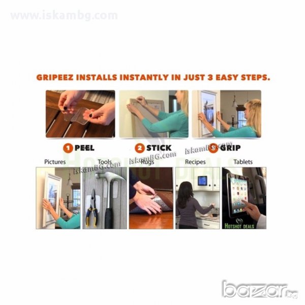 Не съсипвайте стените си, закачете картините си, кърпите си и каквото пожелаете с универсални държачи до 3кг. - Gripeez