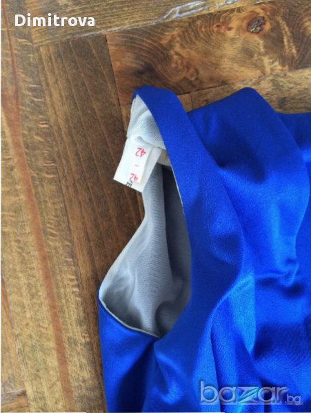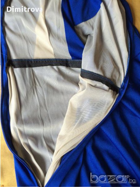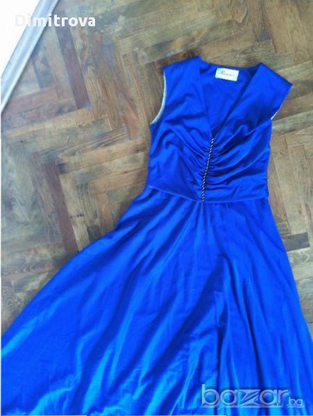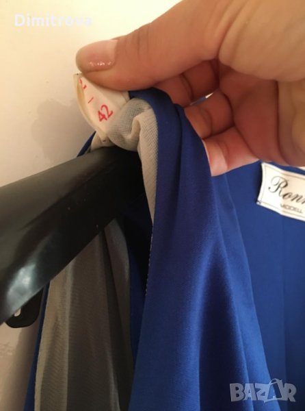 Роклята е на марка Ronner Model. 42 номер. Няма забележки. Страхотно стои. Лека и удобна. Има еластан. Рамене-38, дълбочина на деколтето-24, презрамка-11, раменна извивка-17, подмишници-44,5-45,5, талия-40(там където свършва горната част на роклята), цип-48, дължина-148.