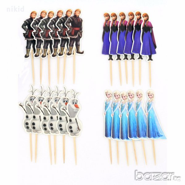 Елза Анна 24 бр топери клечки украса декорация за мъфини кексчета торта и парти замръзнало кралство → Обява 14090091