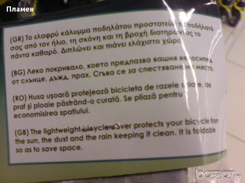 колела, байкове. Предпазва както от влагата и водата, така и от слънчевите лъчи, които увреждат емайлака и предпазва от избеляване и повреждане на корпуса и боята на колелото.