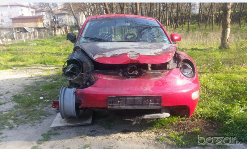 Продава се Фолксваген- Бийтъл САМО И ЕДИНСТВЕНО НА ЧАСТИ ! ! ! Колата преди инцидента с късото съединение от акумулатора си беше в движение, напълно обслужена с всичко работещо по нея! Двигател, Скорости, стартер, компресор на климатика, рейка, хидравлична помпа, компютър, халогени под предна броня с решетки и доста други части под предния капак не са засегнати и работят! Вътре в купето всичко е непокътнато! Лети джанти 16' с 4бр. зимни гуми на 2 сезона 205/55/16, имам и комплект 4бр. летни гуми 205/55/16, кожен подлакътник, климатик, ел. стъкла и огледала, Abs/Esp и др. По предницата всичко е здраво загегната е част от инсталацията , водни съединения, ляв и десен фар, няколко пластмаси! Имам още 2 такива бийтъла на части единия е с същият двигател 2.0 бензин жълт на цвят , другият е 1.9тди 101коня помпа дюза в черен цвят!