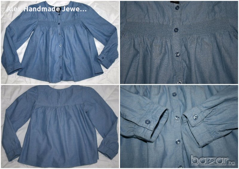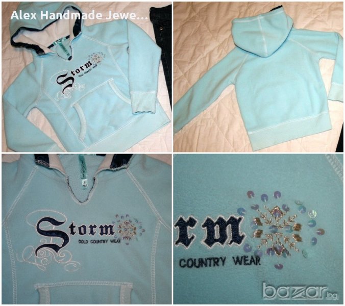 3. Цена 1,50 евро. Светло синя блузка с качулка /суетшърт/ - тънък полар, с много лека вата. По етикет 7 г./122 см. Без забележки, с минимални следи от употреба. Дължина: 45,5 см.; Мишници: 36,5 см.; Ръкав от врата: 50,5 см., от мишницата: 36,5 см.
