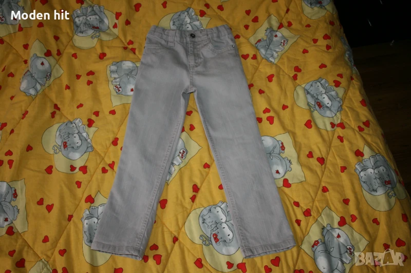 4. Цена 1 евро. Светло сиви еластични дънки DENIM CO. Материя: 98% памук, 2% еластан. Материята е в перфектно състояние. Забележка: липсват камъчета на задните джобове. Дължина: 69,5/50 см..; Талия /с ластик-коректор/: максимум 30,5 см.; Ханш в неразтегнато състояние: 31,5 см.; Крачол при чатала: 19 см., долу: 13,5 см.