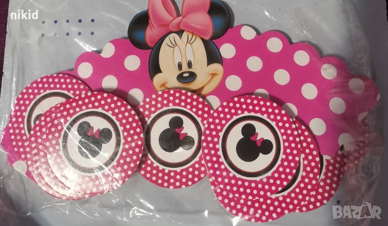 топери и кошнички украса декорация за мъфини кексчета торта и парти Мини Маус циклама → Обява 14170694