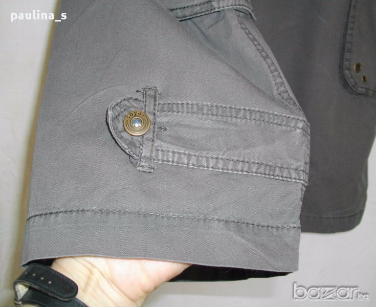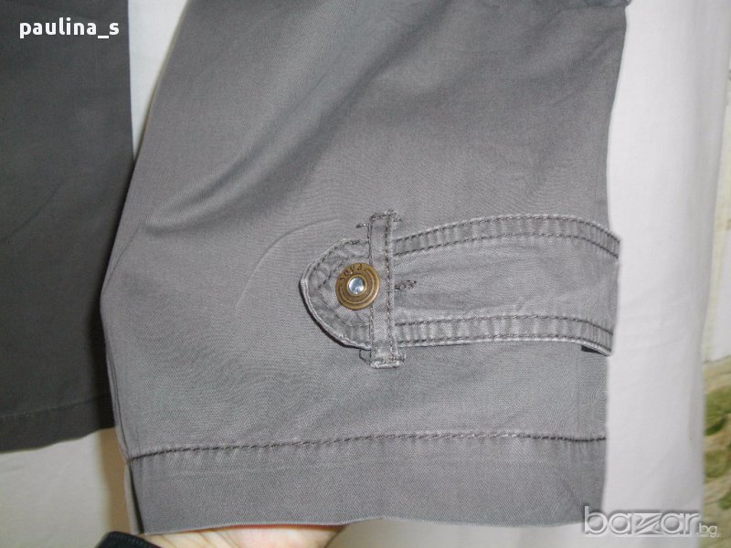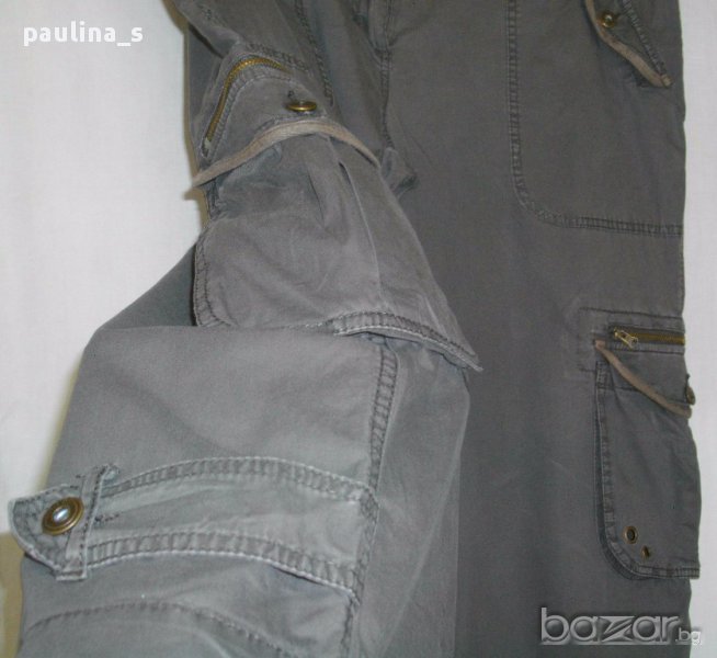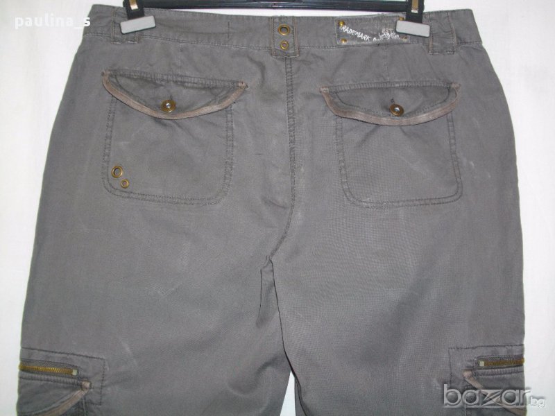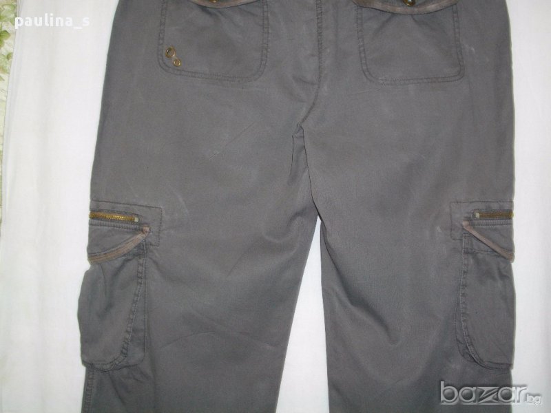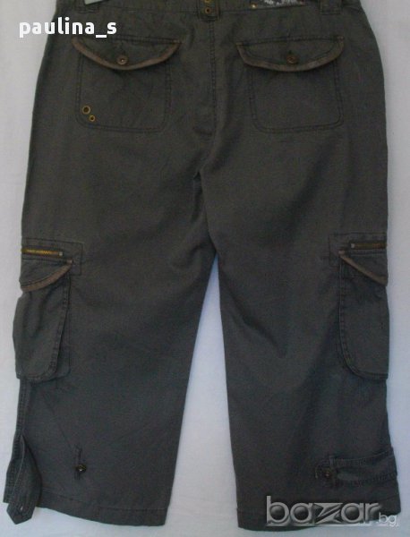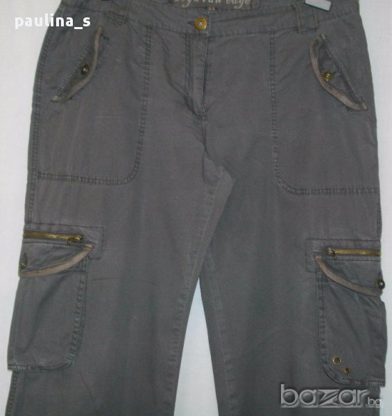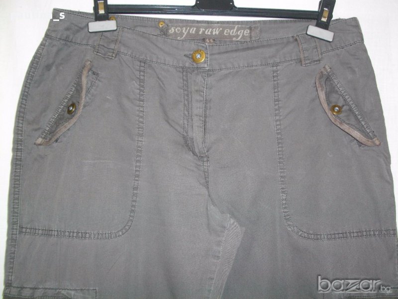 1. L / 2XL "Soya" raw edge. Дамски cargo дънкови бемуди в сиво, летни. Цената е крайна 24,99лв. Моделът е cargo всички джобове са с капаци и брандирани копчета. Отпред са коси, без да променят ханша, отстрани са обемни, като на крачола долу има лента, регулираща ширината. Без дефекти.
