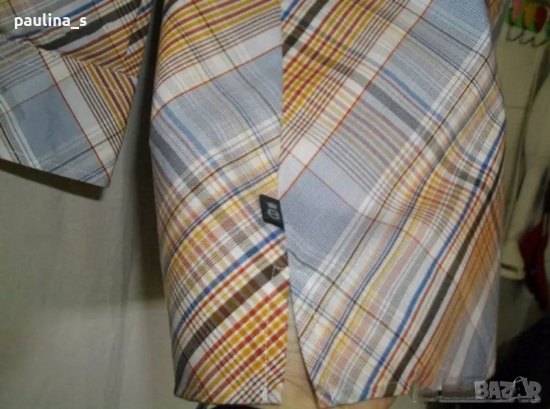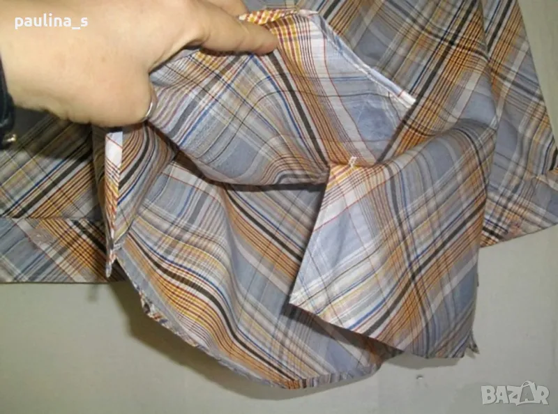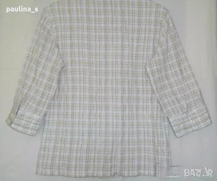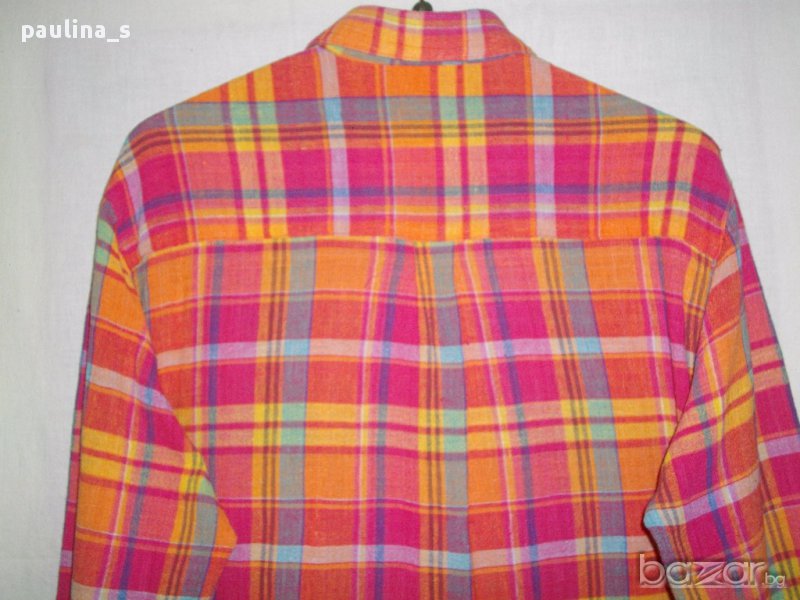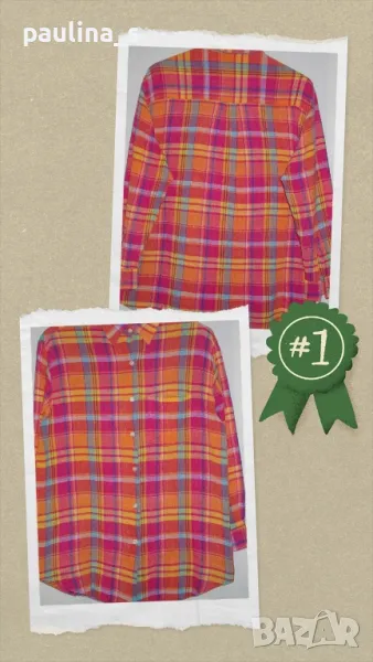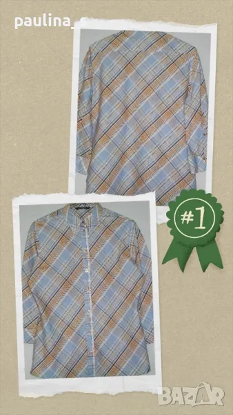 4. Колаж / M / 2XL - "Eterna" excellent-non iron swiss cotton. Цената е крайна 14,99лв. Дамска карирана риза. Материята е немачкаема "non-iron swiss cotton"-100% памук. Столчето с двойно закопчаване, копчетата са натурален седеф. Ръкавите са 7/8 с маншет и двойно закопчаване, като на маншета е с външен илик. Моделът е леко и лежерно втален, използвайки веревното скрояване, за да се постигне радиалната еластичност на плата, става за посочените размери! Навсякъде е брандирана, със съответното качество на изработка и материя.