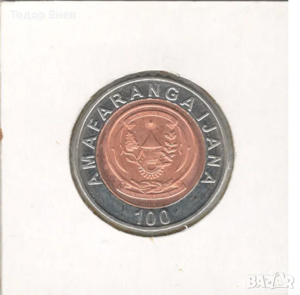 Translation: One hundred francs. Republic of Rwanda. Unity work patrotism.