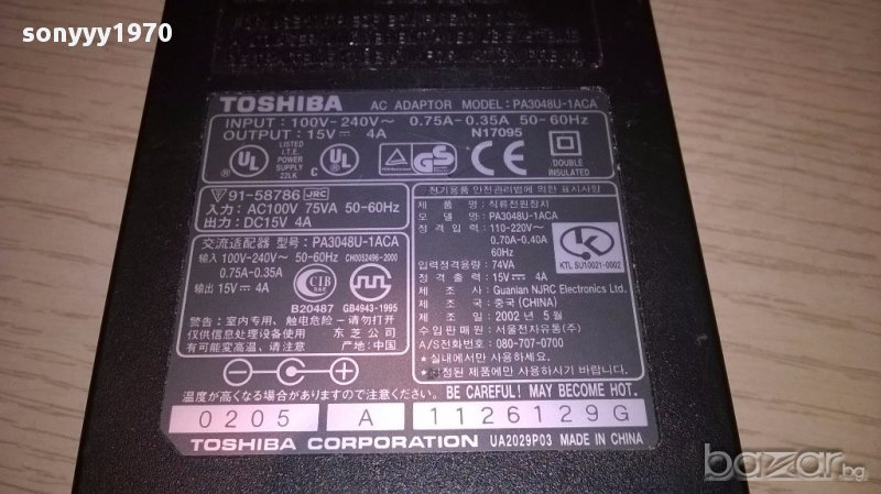 Toshiba 15v/4amp-adaptеr-внос швеицария → Обява 14262729