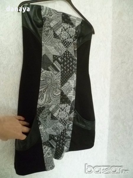Дамска къса рокля с кожени елементи джобчета туника без ръкави → Обява 14288762