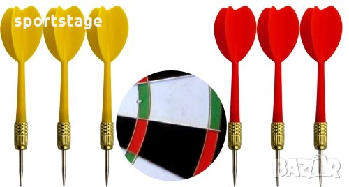 двустранен. Игра за точност на гърба. Стрелите са със стоманен връх. Комплектът съдържа 6 стрели в два цвята по три броя. Дължина стрела 11см. Подходящ за начинаещи, за първите стъпки в дартса, както и за игра със семейството и приятелите.
