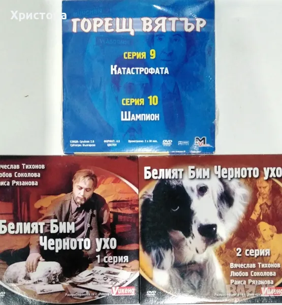 -" Белият Бим, Черното ухо "- два диска, филм 1 и 2,сн.3,4. Цена 4 лв. Продават се само в комплект с други филми от обявата.