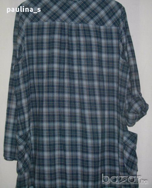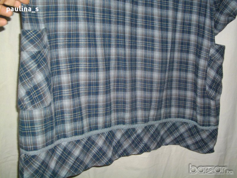 Поради новите правила за заплащане на обновяванията на обявите, моля разгледайте и последните страници на профила ми, обявите са активни и евтини. Бархетна туника за по-едрички дами. Материята е 100% памук - бархет, десен в синьо каре. Моделът е свободен с обемни много сладки джобчета отстрани. Дължината на ръкавите се регулира с лента и копче, като всички копчета са облечени от плата. Отпред и около бието е декорирана с наборна лента и памучна дантела. Дрехата е перфектна без никакви забележки. Моля, разгледайте и другите обяви и последвайте профила. При покупка за над 90лв, поемам част от доставката до офис на Еконт и правя отстъпка от общата цена, така цената за доставката не изглежда твърде непосилна. Приятно разглеждане. Продажбата е сблаготворителна цел, крайна цена. Благодаря за вниманието 🙂