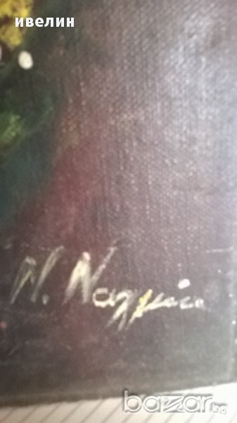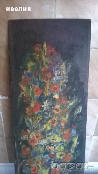 картина-цветя.масло на шперплат.подписана.размери 56см/19,5см.